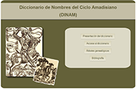 - DINAM. Diccionario del ciclo amadisiano. Fruto de la tesis doctoral de María Coduras Bruna, atienden a aspectos como posibles fuentes, presencia en las armas o linaje, por lo que incluye también una serie de árboles genealógicos. Se basa en su tesis doctoral La antroponimia en los libros de caballerías españoles: el ciclo amadisiano (U. Zaragoza, 2013).