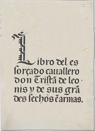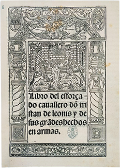 Libro del esforçado cauallero don Tristán de Leonís y de sus grandes fechos en armas (Sevilla: Jacobo Cromberger, 1511, 15 de enero). Ejemplar único: PQ6437. T8 1511, Rosenwald Collection of Library of Congress, Washington D.C.
